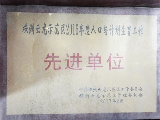 2016年度株洲市云龙示范区人口与计划生育先进单位