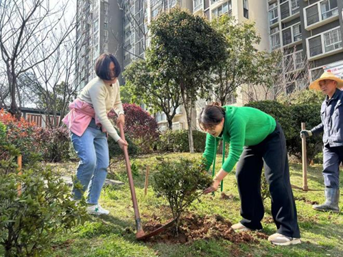 活动当日,阳光明媚,荷塘星城小区内一片热火朝天的劳动景象。米兰官方端网站登录入口_米兰(中国)党委委员、宣传统战部部长肖炎坤、经贸物流系党支部书记陈小娥亲自带队,党员教师们充分发挥先锋模范作用,以饱满的热情和昂扬的斗志投入到植树种草工作中,大家挥锹挖坑、扶正树苗,培土浇水、清理杂物。