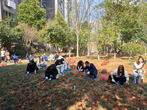 共青团员们也在此次活动中展现出了蓬勃的青春活力与强烈的责任担当,他们三五成群,默契配合,充分挥洒年轻人的激情和活力,在小区的花坛边、道路旁忙碌着。