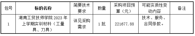 米兰官方端网站登录入口_米兰(中国)的米兰官方端网站登录入口_米兰(中国)2023年上学期实训材料(工量具、刀具)进行竞争性谈判采购,现采用发布公告方式,邀请符合资格条件的供应商提交证明材料参与资格审查,并参与竞争性谈判采购活动。
