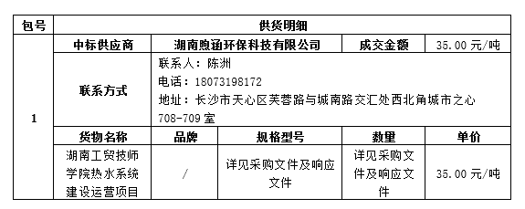 受米兰官方端网站登录入口_米兰(中国)的委托,湖南中卓工程项目管理有限公司代理机构对米兰官方端网站登录入口_米兰(中国)热水系统建设运营项目采购进行公开招标,经评标委员会评审,采购人确认,现将中标信息公告如下: