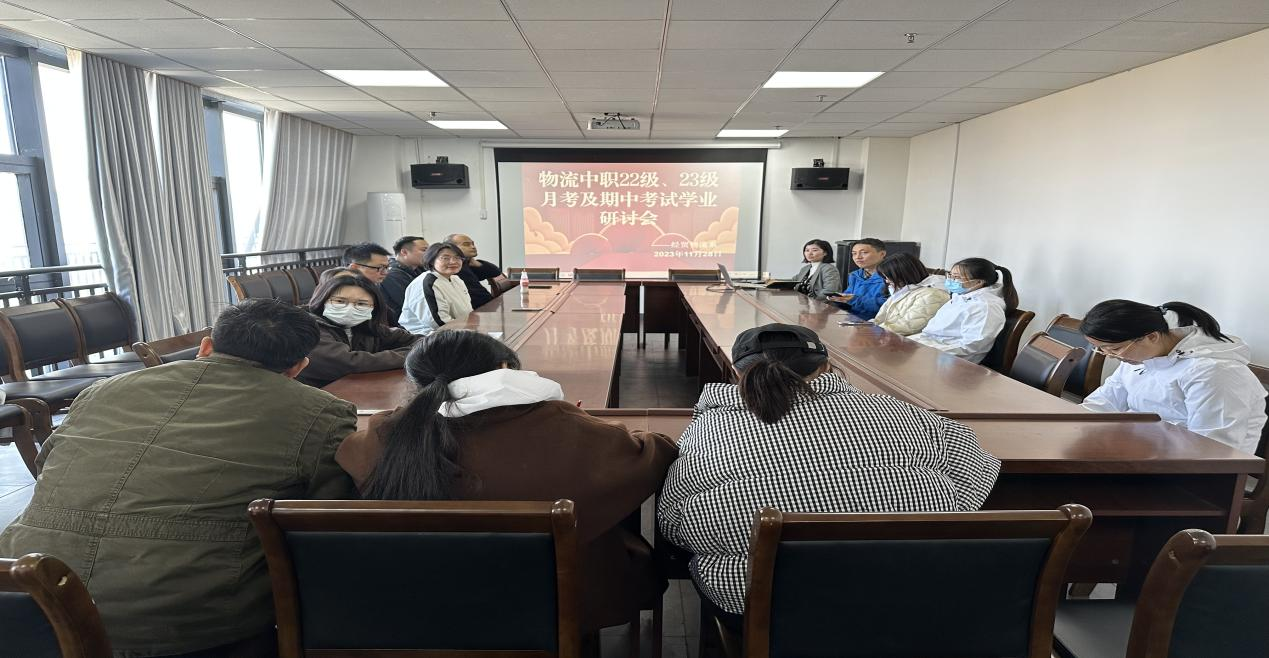“百尺竿头,更进一步”,11月28日,经贸物流系在明理楼403开展“不负众望 砥砺前行”物流中职22级、23级月考及期中考试学业研讨会主题活动。系主任陈小娥、副主任罗斯光、班主任曹筇、刘黎、物流教研室全体老师及物流中2201班、物流中2301班公共课任课老师参会。