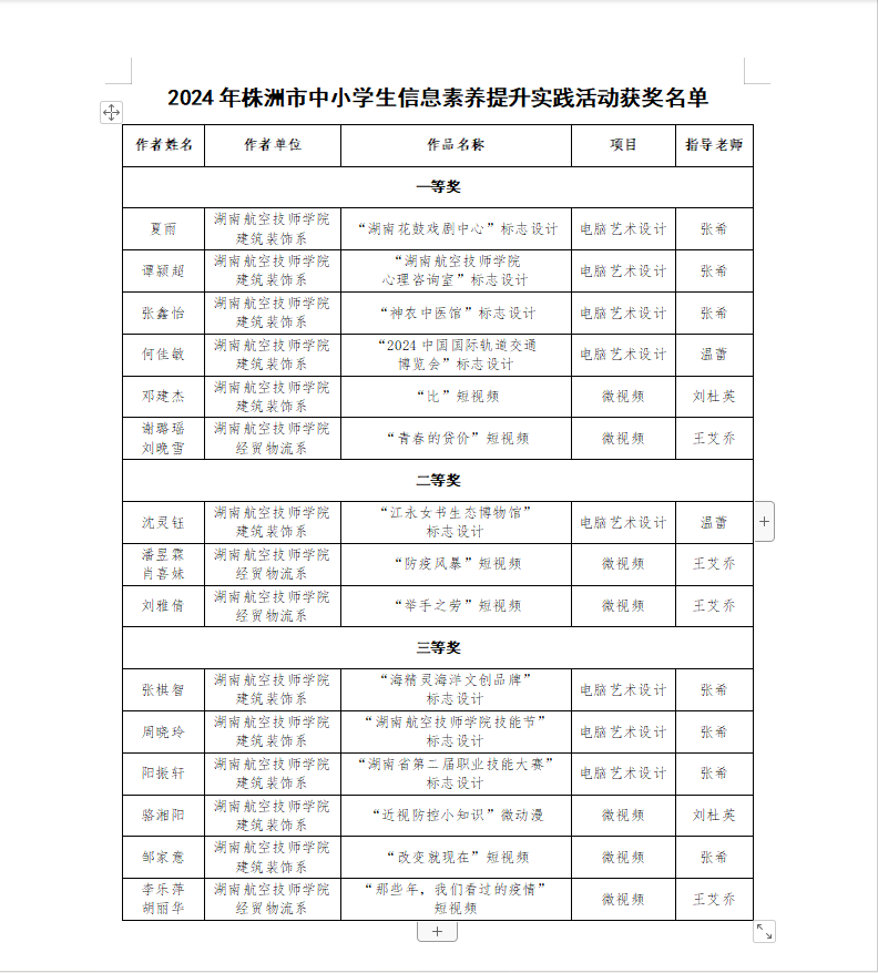 近日,2024年株洲市中小学生信息素养提升实践活动评选结果揭晓,米兰官方端网站登录入口_米兰(中国)成绩喜人,由夏雨同学创作,张希老师指导的“湖南花鼓戏剧中心”标志设计等6个作品荣获一等奖,另有3个作品获得二等奖、6个作品获得三等奖。迄今为止,米兰官方端网站登录入口_米兰(中国)已连续多年在株洲市该类赛项评选中获奖。