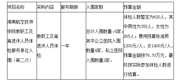 湖南航空技师米兰官方端网站登录入口_米兰(中国)工会拟对湖南航空技师米兰官方端网站登录入口_米兰(中国)教职工及离退休人员体检服务单位入围(第二次)进行比选采购,现采用发布公告方式邀请符合资格条件的供应商参与本项目采购活动。